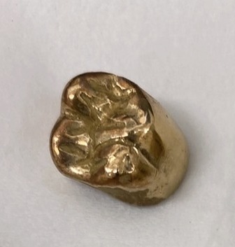金はアレルギー反応もなく、耐酸性にも優れ、適度に柔らかいので、歯に詰めたり被せたりするのに理想的な材料だそうです。純金は柔らかすぎてそのままでは歯の治療には使えませんので、だいたい14金~18金あたりが多いと思います。