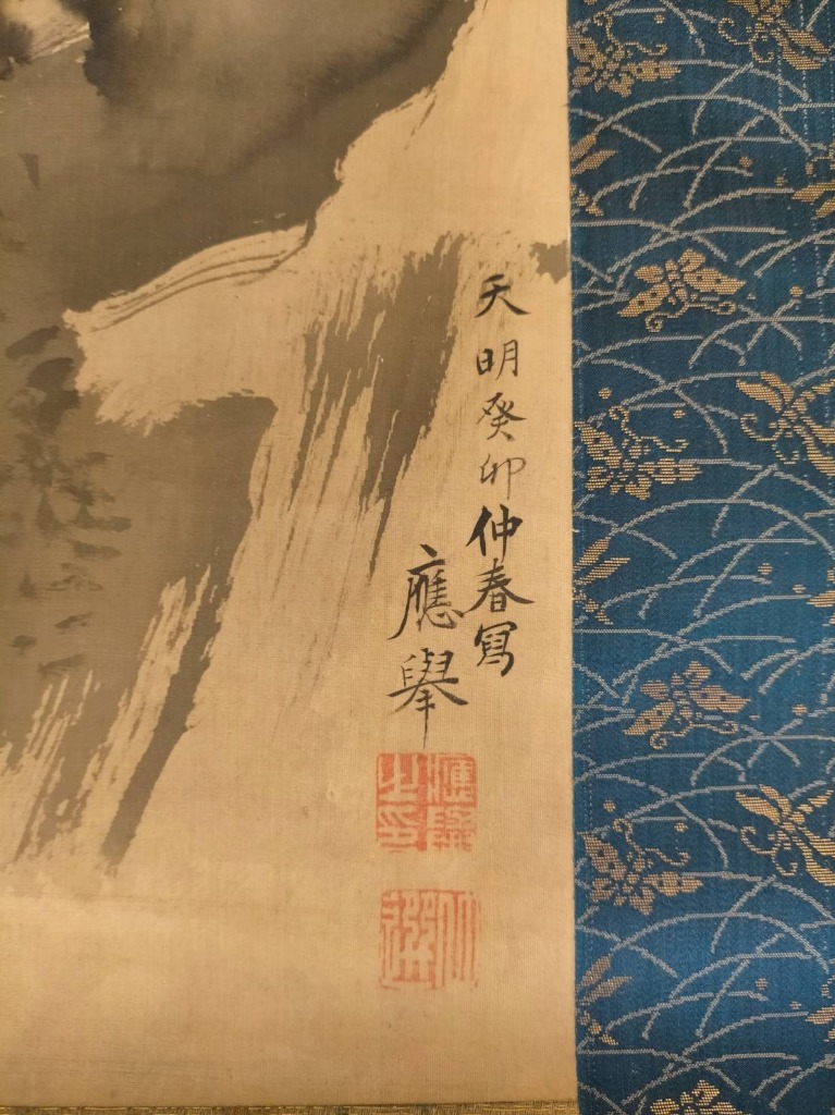 今回、自分でもいろいろ調べましたので、たいへん勉強になりました。たとえば掛軸の落款のところに書かれている天明癸卯というのは、天明年間の癸卯(みずのとう)の年、すなわち天明3年(1783年)のこと。応挙は1733年生まれですから、本物であれば50歳(数え年で51歳)の時のものになります。もちろん、応挙自身やその真筆の絵、彼の後継者についても調べました。骨董・美術の世界は奥が深いですね。